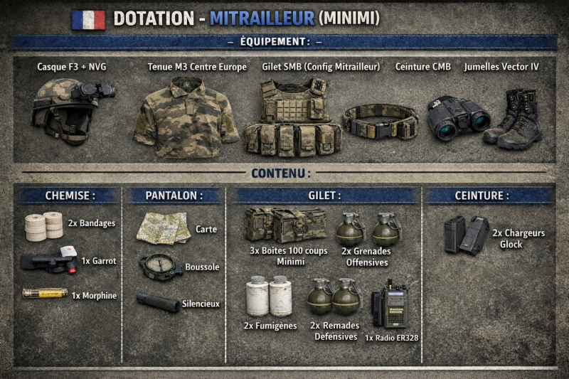 DOTATION DES ESCOUADE DE RECO 13 RDP REGIMENT D'INFENTERIE DE PARACHUTISTE